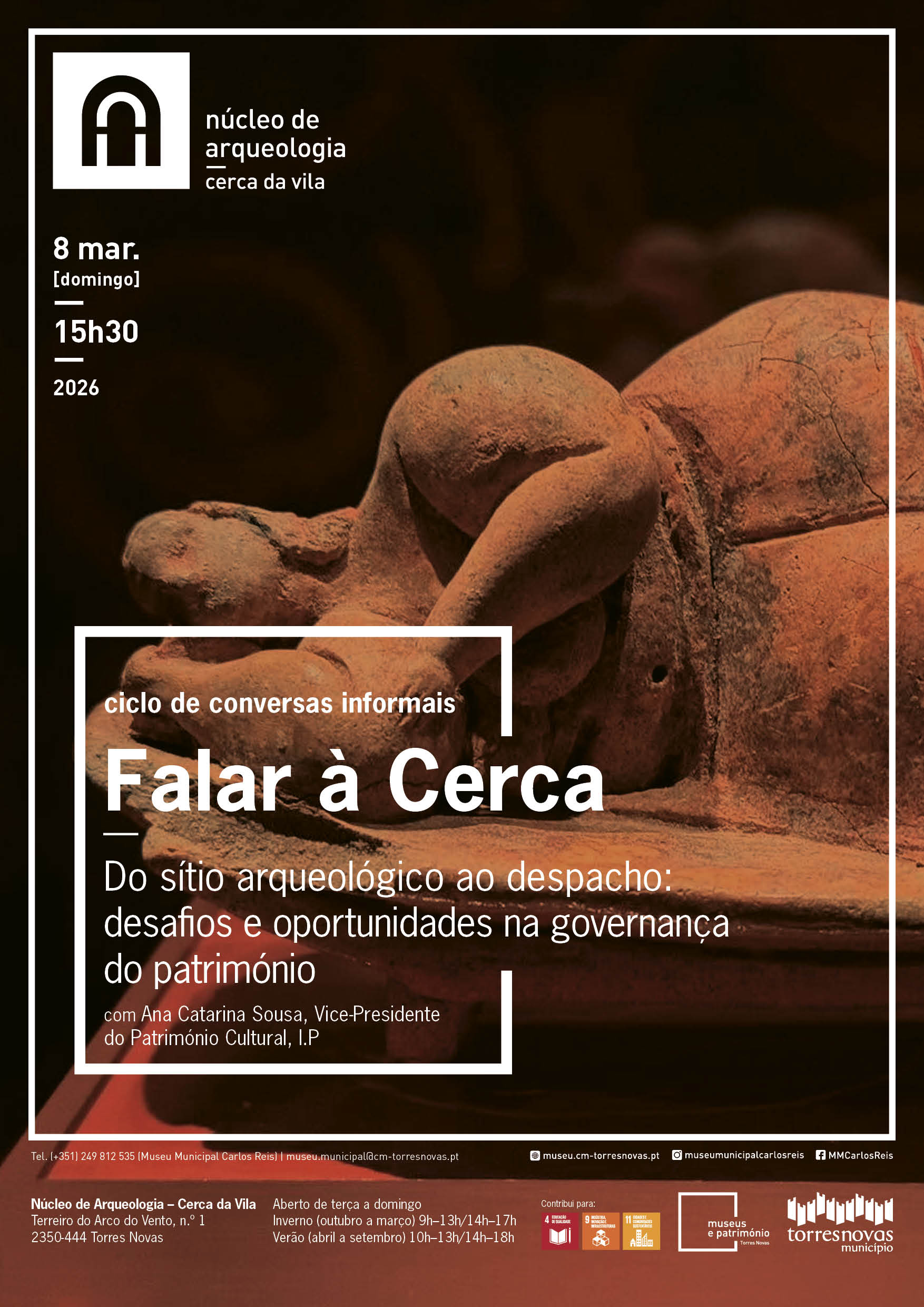 O Núcleo de Arqueologia Cerca da Vila de Torres Novas traz mais uma edição do “Falar À Cerca”, no dia 8 de março, Dia Internacional da Mulher, pelas 15h30. Esta sessão terá como tema “Do sítio arqueológico ao despacho: desafios e oportunidades na governança do património”. Um momento para reconhecer conquistas e afirmar a presença das mulheres nos lugares de decisão e construção do futuro